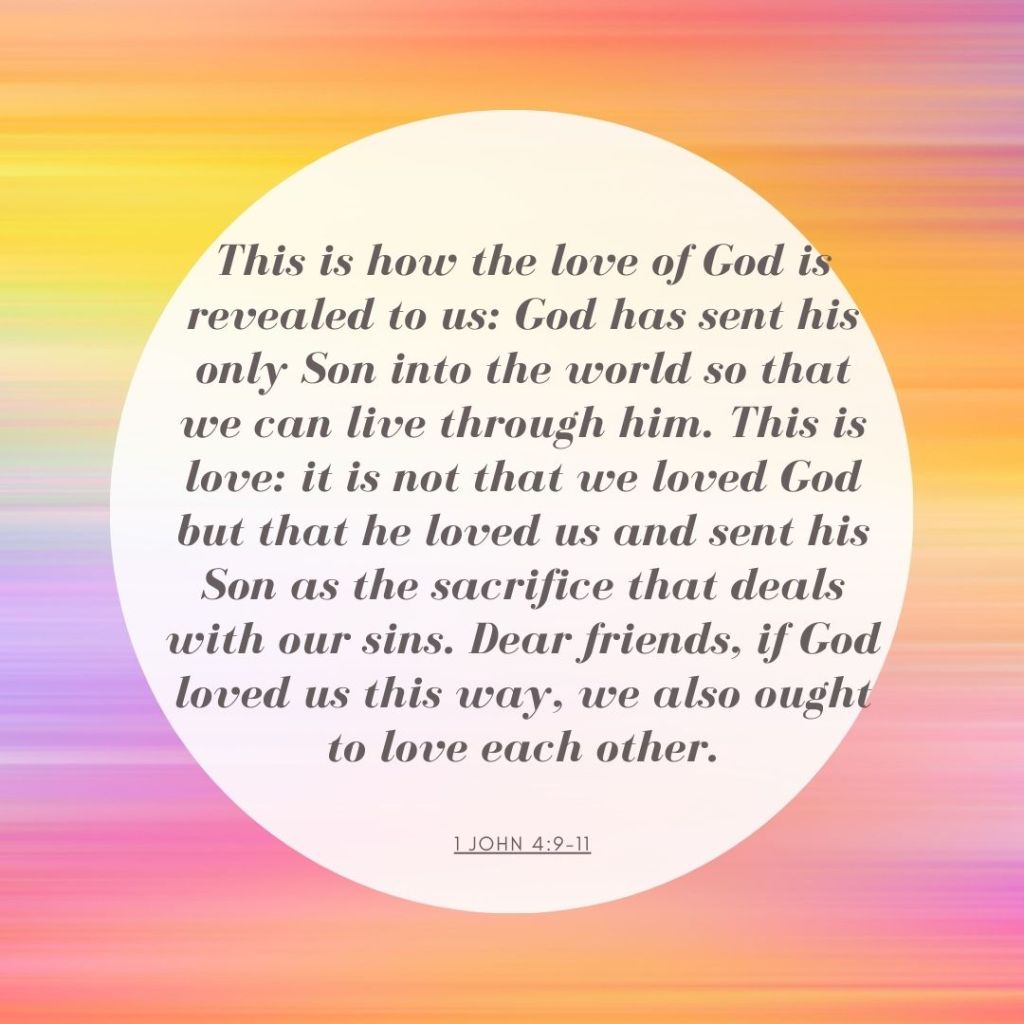 God is love. It is this love that we celebrated on Christmas. God loved us so much that he sent his own son into the world to redeem it. God wants to be reconciled to us, his beloved. He has pursued us across time and space, from the Garden of Eden to the cross in an effort to open the door of our hearts to receive his love. As John tells us in the above passage, God sent his son into the world so we might live through him. And what does this life lived in the Son look like? John has an answer for that too–it looks like love. We live through Christ when we love others as God loved us. When we reach out beyond ourselves, beyond our own opinions and desires and personal ambitions to show another person that they are valued and have worth, then we are living through Christ. John says, “we ought to love each other”. So that is my prayer for all of us as we leave 2020 and embark on whatever the new year might hold. We ought to love each other.