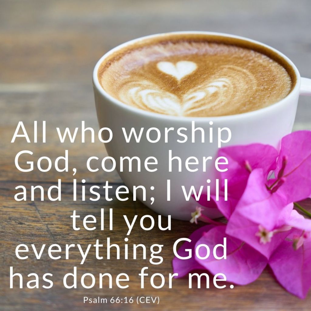 My faith isn’t something I want to force on someone. It’s not a weapon, although it has been weaponized over the centuries in some pretty awful ways. Rather, being a witness means telling someone else how you, personally, have seen God working and moving in your life. Look at how the Psalmist puts it: