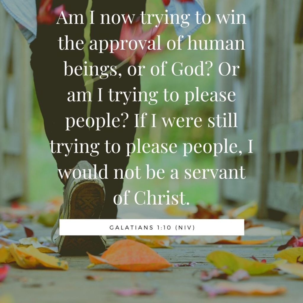 But regardless of whether the judgement is real or perceived, the fact remains that we can get a little to a lot nutty over it, and miss out on some God-orchestrated blessings. While I was frantically running around the living room folding blankets, digging random socks from the couch cushions, organizing counter junk into piles, I felt God telling me to chill out. Our friend was not going to judge my housekeeping abilities, and if I kept stressing about it I was going to completely miss the joy of spending time in fellowship with a friend–which, as we all know, is a true blessing. I remembered the above Scripture, from Galatians, in which Paul exhorts believers not to seek after human approval, but to seek the approval of God.