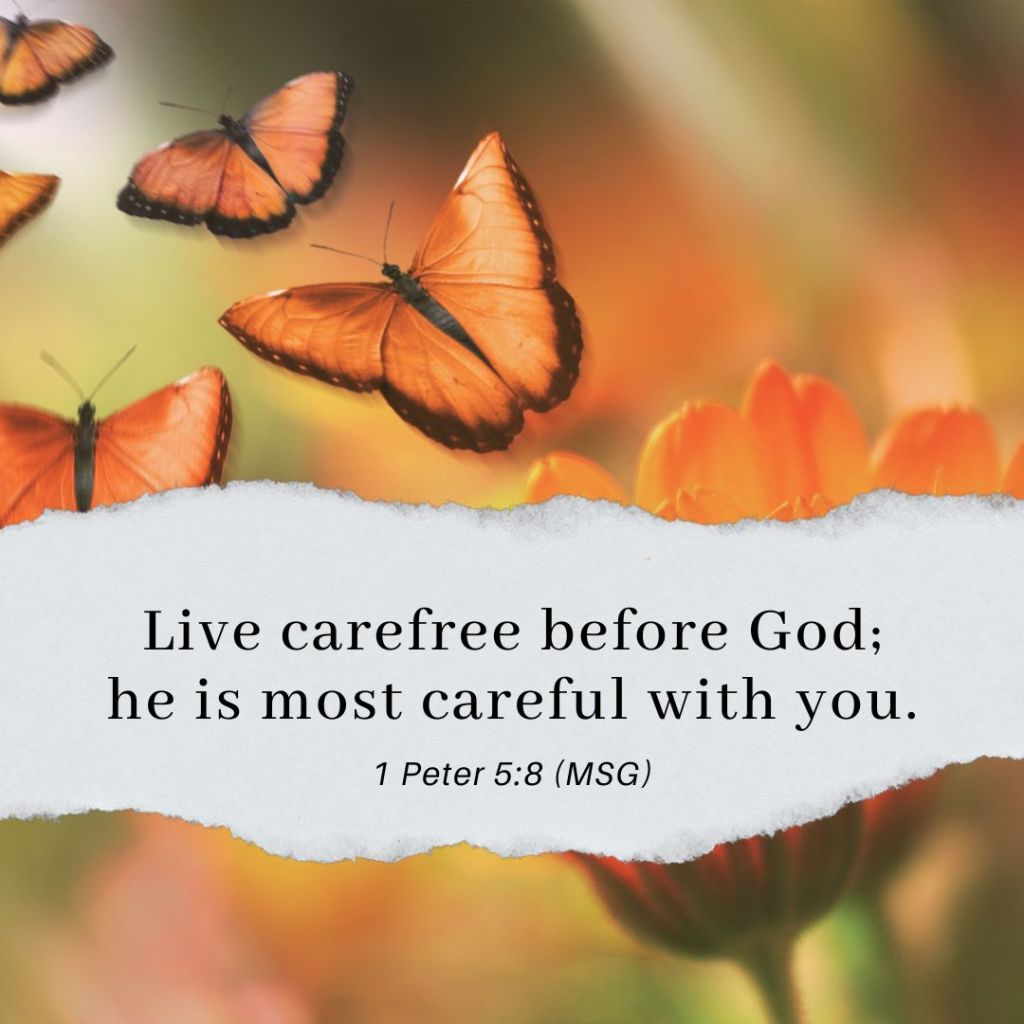 Like the gnats that gather around our home each summer, so we will have seasons of worry. There will be illness, budgets will be stretched thin, loved ones will make questionable choices, we will fail at many things. Just a I can’t banish the gnats, so we can’t banish our worries. But we can make a conscious choice not to be consumed by them. We can turn to God, our Rock and Caregiver, and cast those cares on him. We can live carefree, knowing that God cares so much for us.