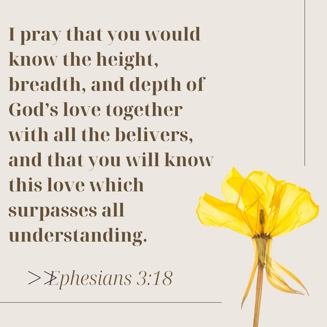 When your heart is full of compassion and kindness, that is God’s love shining through. Paul reminds us in the letter to the Ephesians that God’s love doesn’t just skim the surface of life. It’s not temporal or transactional. It doesn’t ebb and flow. Instead, it is deep and wide, reaching well above and beyond anything we can grasp, let alone comprehend.