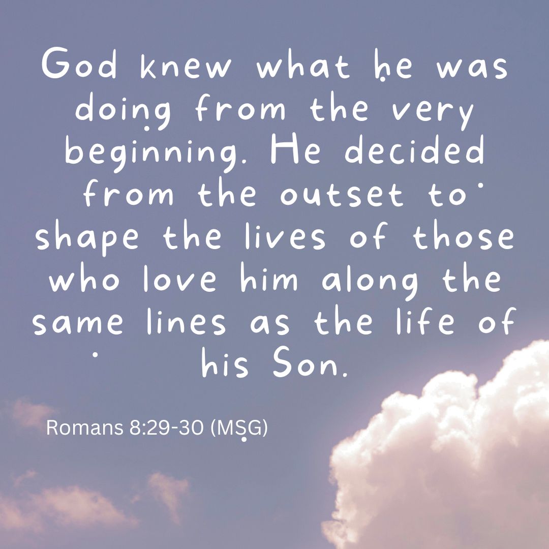 God doesn’t ever let us be. He is, as C.S. Lewis wrote, the “great hound of heaven” (or, if you rather Anne LaMott’s description–a stray tom cat yowling at the front door.) As Paul writes in Romans 8, God had a plan for us in the dawn of time. Millions of years before the first person would ever set foot on Earth, centuries before our ancestors began putting down roots, decades before our parents even considered the next generation, God was working in our lives to write his redemptive story.